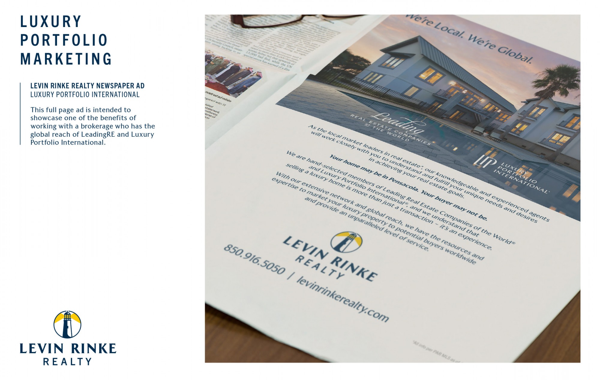 Levin Rinke Realty received the award for Luxury Portfolio Marketing, signifying excellence in luxury real estate marketing and exemplary incorporation of the Luxury Portfolio International® brand.