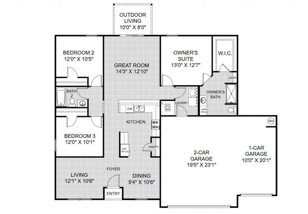 Step through the covered front entry of the Eastport by Holiday Builders and into a welcoming foyer that opens to a versatile front living space and formal dining area -- perfect for greeting guests or creating a homeoffice or flex room. Continue down the hall and the home opens into a spacious great room filled with natural light, seamlessly connected to the kitchen for easy everyday living and entertaining. The kitchen featuresample counter space, a convenient pantry, and a breakfast bar overlooking the main living area so you're always part of the conversation.Privately tucked toward the back of the home, the owner's suite offers a relaxingretreat...read more